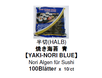 YAKI-NORI BLUE Nori Algen für Sushi 100 Blätter Japanische Algen in Blätter für Sushi "HALB" YAKI-NORI BLUE, oder Algen in Blätter für Sushi aus Japan Verpackung Inhalt 100 Blätter Japan Algen in ...