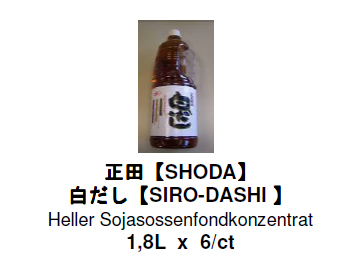 SHODA heller Sojasossenfondkonzentrat 1,8 Liter SHODA heller Sojasossenfondkonzentrat 1,8 Liter Japanische heller Sojasossenfondkonzentrat "SHODA" SIRO-DASHI, oder heller Sojasossenfondkonzentrat aus Japan Verpackung Inhalt 1,8 Liter Japan hell...